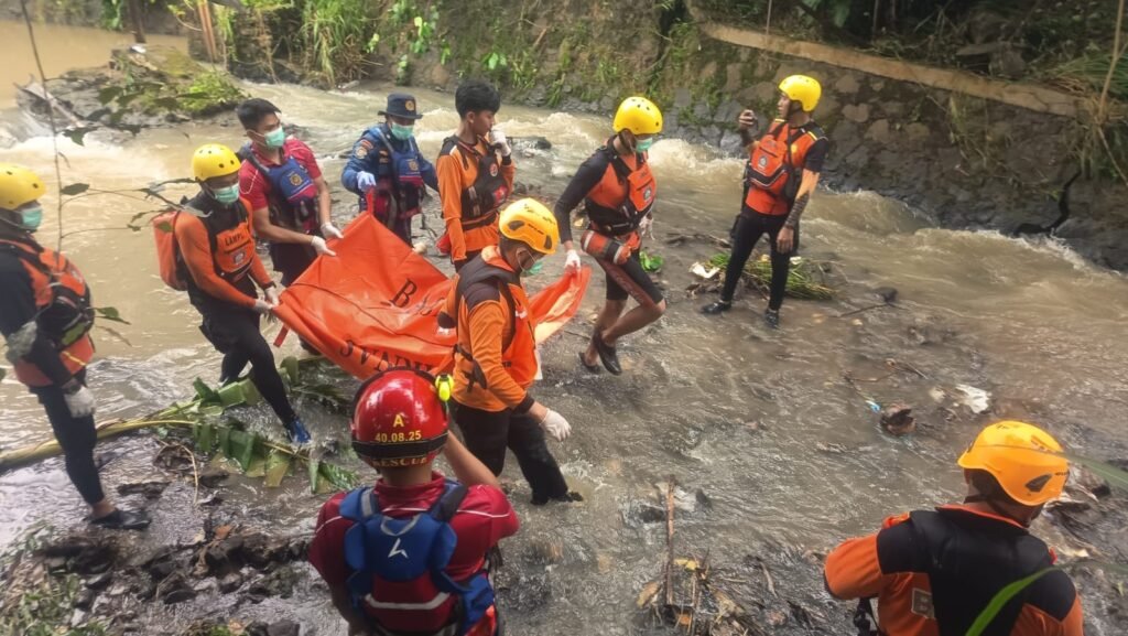 Petugas menyisir saluran drainase dan aliran air di sekitar lokasi untuk menemukan korban yang diduga terbawa arus saat hujan deras melanda wilayah tersebut. (red)